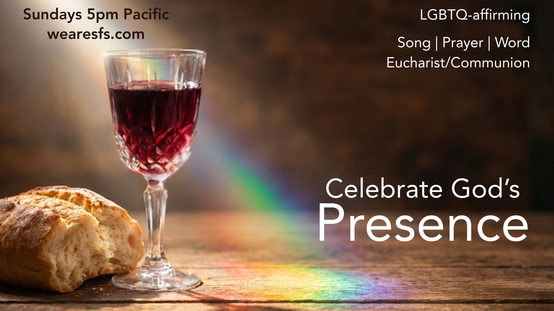 Join us at 5 pm Sundays in San Jose, California and right here.